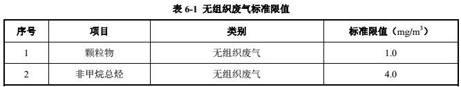 (1)无组织废气颗粒物、非甲烷总烃排放执行《大气污染物综合排放标准》