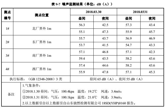 由表  9-7  可知,验收监测期间,该项目昼间厂界噪声监测结果符合《工业企业厂界环境噪声排放标准》(GB12348-2008)3类标准要求(昼间  65dB(A)、夜间 55 dB(A))。